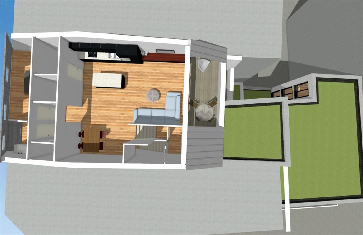 Achteraan: bijkomende ruimte van ca. 60 m² met toegang via Lange Leemstraat